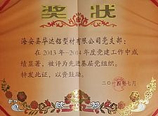 先進黨支部證書